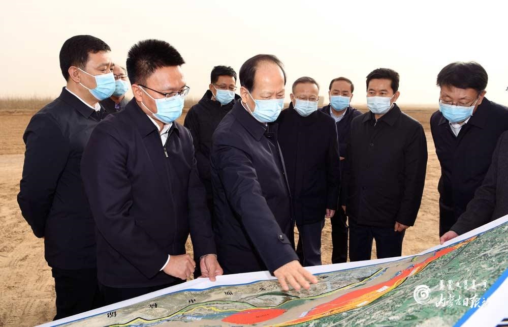 3月16日,自治區(qū)黨委書記、人大常委會主任石泰峰來到巴彥淖爾市臨河區(qū)雙河鎮(zhèn)富河村,察看了解黃河河道整治情況。內蒙古日報社融媒體記者袁永紅攝
