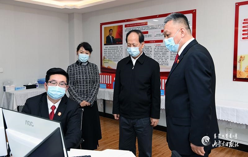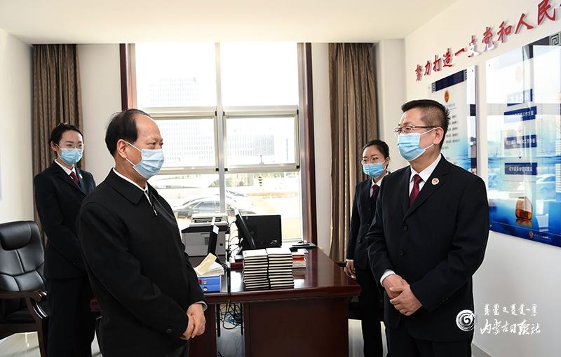 3月29日下午,自治區(qū)黨委書記、人大常委會主任石泰峰在呼和浩特市賽罕區(qū)人民法院,了解該院開展教育整頓和整改優(yōu)化訴訟服務等情況。內(nèi)蒙古日報社融媒體記者 袁永紅 攝