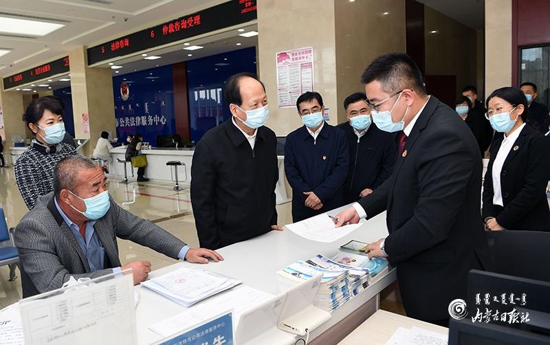 3月29日下午,自治區(qū)黨委書記、人大常委會主任石泰峰在呼和浩特市公共法律服務中心,了解司法系統(tǒng)開展教育整頓和法律援助等情況。內(nèi)蒙古日報社融媒體記者 袁永紅 攝