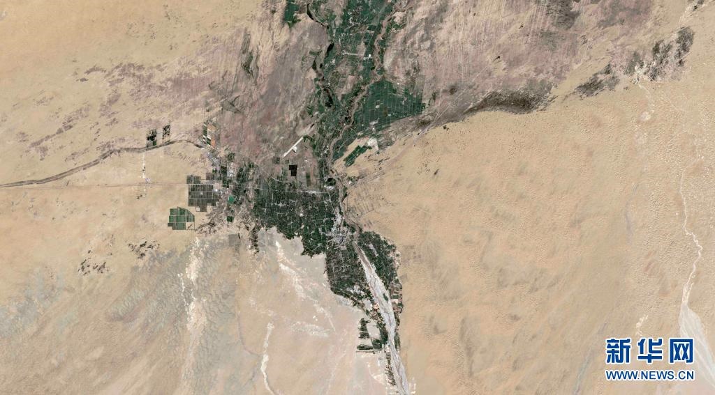 這是新疆且末縣河東治沙站的衛(wèi)星圖片。新華社發(fā)(新華社衛(wèi)星新聞實驗室、瞭望數(shù)據(jù)媒體實驗室聯(lián)合供圖)