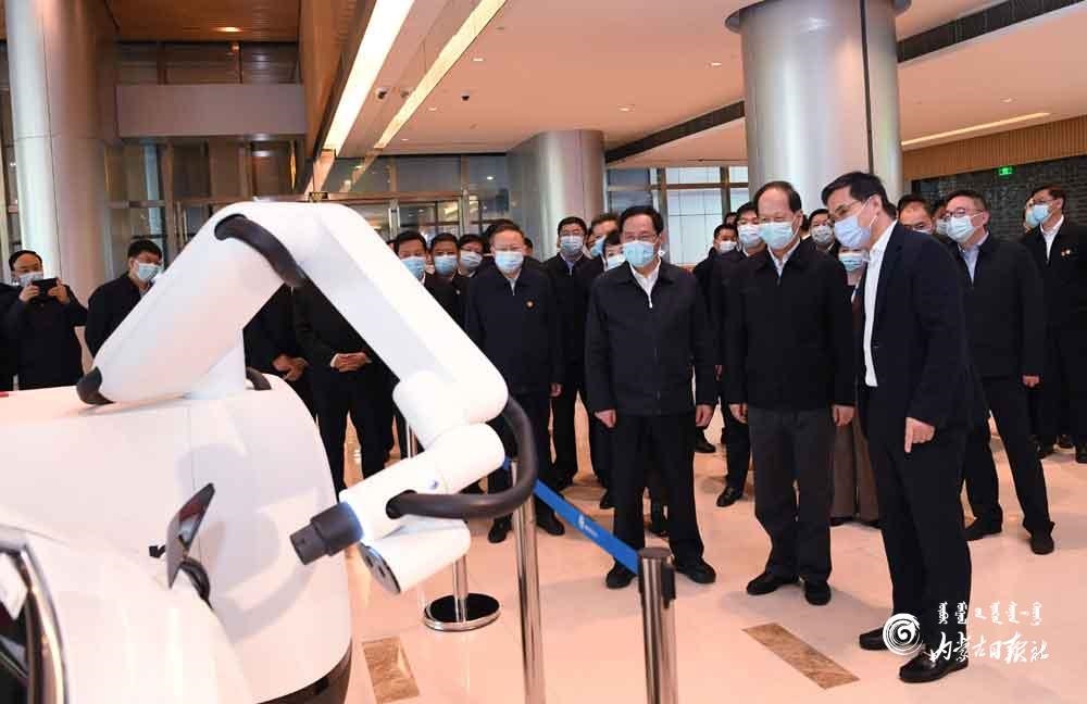 4月19日,自治區(qū)黨委書記、人大常委會主任石泰峰率內(nèi)蒙古黨政考察團在遠景科技集團學(xué)習(xí)考察。內(nèi)蒙古日報社融媒體記者 袁永紅 攝