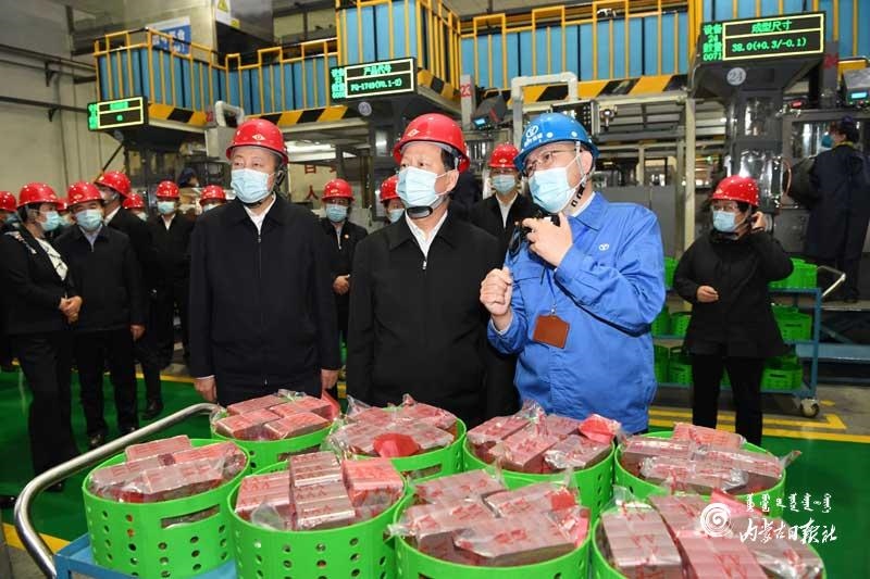 4月22日,自治區(qū)黨委書記、人大常委會主任石泰峰,與參加自治區(qū)推動高質(zhì)量發(fā)展重大項目建設(shè)動員大會的代表一起觀摩包頭韻升強磁材料有限公司二期擴建項目。內(nèi)蒙古日報社融媒體記者袁永紅攝