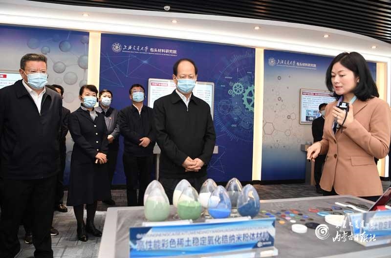 4月22日,自治區(qū)黨委書記、人大常委會主任石泰峰,與參加自治區(qū)推動高質(zhì)量發(fā)展重大項目建設(shè)動員大會的代表一起觀摩上海交通大學(xué)包頭材料研究院及產(chǎn)業(yè)園。內(nèi)蒙古日報社融媒體記者 袁永紅 攝
