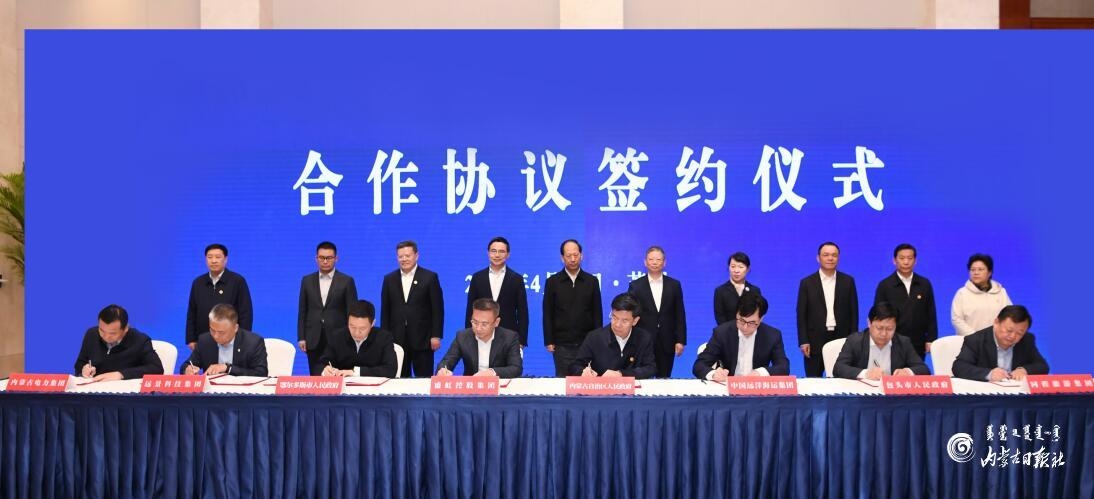 4月19日,內(nèi)蒙古自治區(qū)黨委書記、人大常委會主任石泰峰在蘇州見證自治區(qū)政府與中遠海運集團,包頭市政府與同程旅游集團,鄂爾多斯市政府與遠景科技集團、盛虹集團,內(nèi)蒙古電力集團與遠景科技集團簽署合作協(xié)議。內(nèi)蒙古日報社融媒體記者