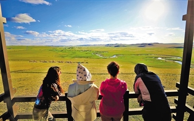 “秋天的草原更令人迷醉。絲絲涼風(fēng),清爽宜人,湛藍(lán)天空,明靜高遠(yuǎn),柔美蜿蜒的莫日格勒河,悠然自得的牧馬生活,最讓我難忘的是呼倫貝爾的綠?!贝筮B的王女士帶著父母和孩子自駕游呼倫貝爾,從森林到草原,一路尋綠穿行。