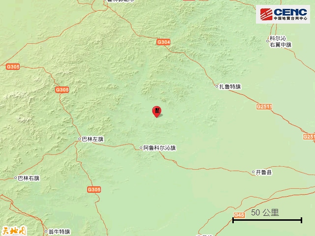 15日5時(shí)10分,在赤峰市阿魯科爾沁旗(北緯44.2度,東經(jīng)120.24度)發(fā)生4.7級(jí)地震。(圖片來(lái)自中國(guó)地震臺(tái)網(wǎng)中心)