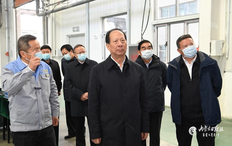 深秋將盡,土右旗新型工業(yè)園區(qū)新特能源高純多晶硅項(xiàng)目施工現(xiàn)場(chǎng)依然熱火朝天,平均每天都有數(shù)千名工人加班加點(diǎn)施工作業(yè)。石泰峰一走進(jìn)項(xiàng)目工地,就被這里如火如荼的建設(shè)場(chǎng)景所感染。他認(rèn)真聽取園區(qū)建設(shè)、項(xiàng)目實(shí)施情況介紹,詳細(xì)了解智能綠色工廠建設(shè)、低碳循環(huán)經(jīng)濟(jì)產(chǎn)業(yè)鏈布局等情況。得知項(xiàng)目開工以來(lái)僅用3個(gè)多月時(shí)間就完成絕大部分基建工程任務(wù)、進(jìn)入設(shè)備安裝階段,石泰峰欣慰地說(shuō),工作推進(jìn)有力度,項(xiàng)目建設(shè)才會(huì)有速度,只有實(shí)打?qū)嵉馗刹拍芤姷竭@樣的成效。他勉勵(lì)新特能源公司“行如其名”,把更多具有“新”和“特”的優(yōu)勢(shì)產(chǎn)業(yè)布局到內(nèi)蒙古,積極引進(jìn)發(fā)展低能耗、低排放、高附加值的產(chǎn)業(yè)項(xiàng)目,為促進(jìn)地方經(jīng)濟(jì)高質(zhì)量發(fā)展貢獻(xiàn)力量。在雙良硅材料公司、金力永磁公司、大地熊永磁科技公司、杉杉科技公司、華鉞實(shí)業(yè)公司和萬(wàn)科奧運(yùn)冰雪中心,石泰峰走進(jìn)工地、車間、展廳,與企業(yè)負(fù)責(zé)人深入交流,詢問(wèn)企業(yè)對(duì)地方營(yíng)商環(huán)境的感受和評(píng)價(jià)。看到各個(gè)項(xiàng)目都在抓進(jìn)度、趕工期,推進(jìn)速度快、成效好,石泰峰給予充分肯定。他指出,一個(gè)地區(qū)的營(yíng)商環(huán)境好不好,不是政府說(shuō)了算,而是市場(chǎng)主體說(shuō)了算,主要看企業(yè)愿意不愿意來(lái)投資,企業(yè)來(lái)了以后項(xiàng)目推進(jìn)得快不快、建設(shè)得好不好。他對(duì)當(dāng)?shù)馗刹空f(shuō),只有我們有誠(chéng)心、有決心,企業(yè)投資發(fā)展才會(huì)有信心。要持續(xù)用力抓好優(yōu)化營(yíng)商環(huán)境工作,把服務(wù)保障企業(yè)運(yùn)行和項(xiàng)目建設(shè)作為重中之重,及時(shí)研究解決企業(yè)反映的困難和問(wèn)題,切實(shí)為企業(yè)提供全方位全周期的優(yōu)質(zhì)高效服務(wù)。