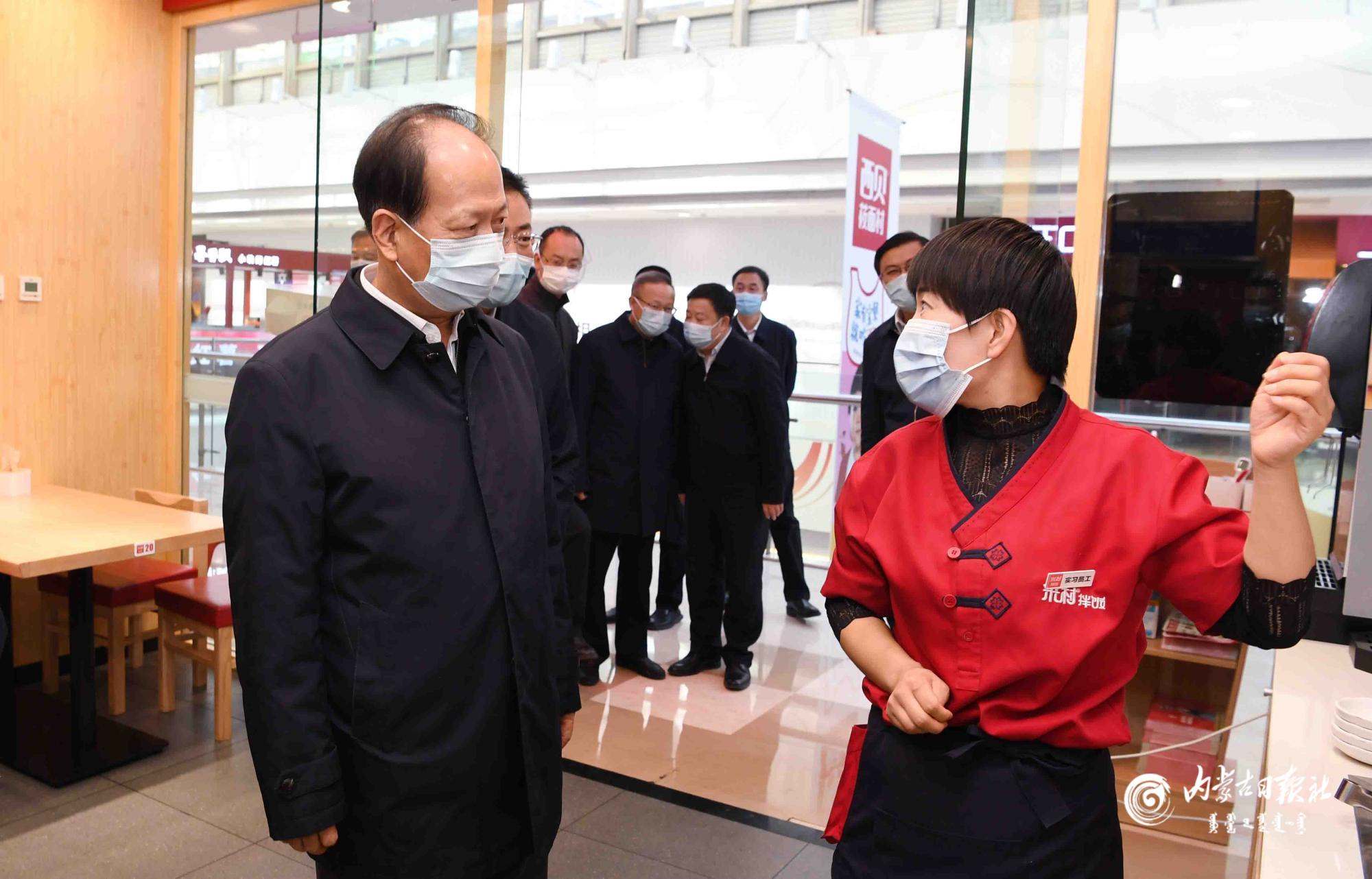 10月26日,自治區(qū)黨委書(shū)記、人大常委會(huì)主任石泰峰來(lái)到新華大街萬(wàn)達(dá)廣場(chǎng),檢查防控措施落實(shí)情況。內(nèi)蒙古日?qǐng)?bào)社融媒體記者 袁永紅 攝
