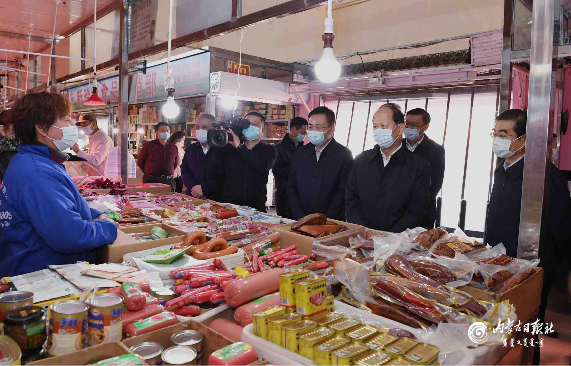 10月26日,自治區(qū)黨委書(shū)記、人大常委會(huì)主任石泰峰來(lái)到東瓦窯農(nóng)副產(chǎn)品批發(fā)市場(chǎng),與購(gòu)物市民一起接受體溫檢測(cè)。在水產(chǎn)海鮮和肉食大廳,他認(rèn)真察看防控措施落實(shí)情況。內(nèi)蒙古日?qǐng)?bào)社融媒體記者 袁永紅 攝