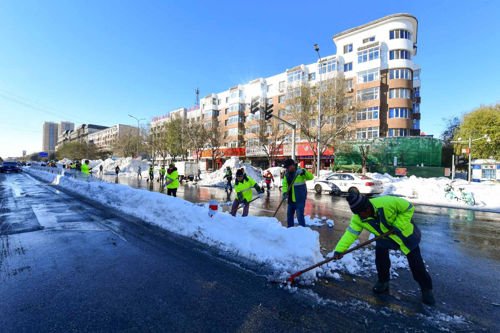科爾沁區(qū)巷道清雪現(xiàn)場。張啟民攝