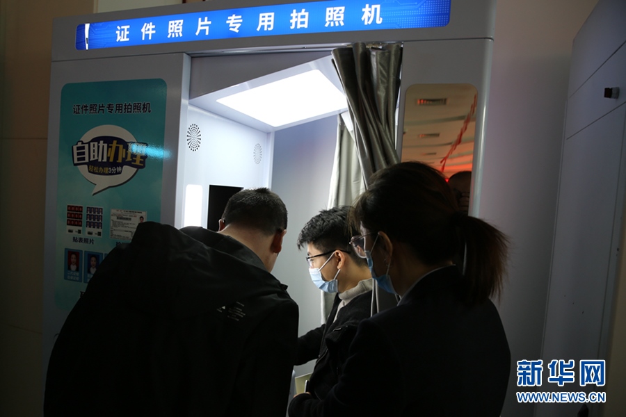 市民在賽罕區(qū)政務(wù)服務(wù)大廳“24小時政務(wù)服務(wù)超市”進行證件照片自助拍照。新華網(wǎng) 石毅 攝