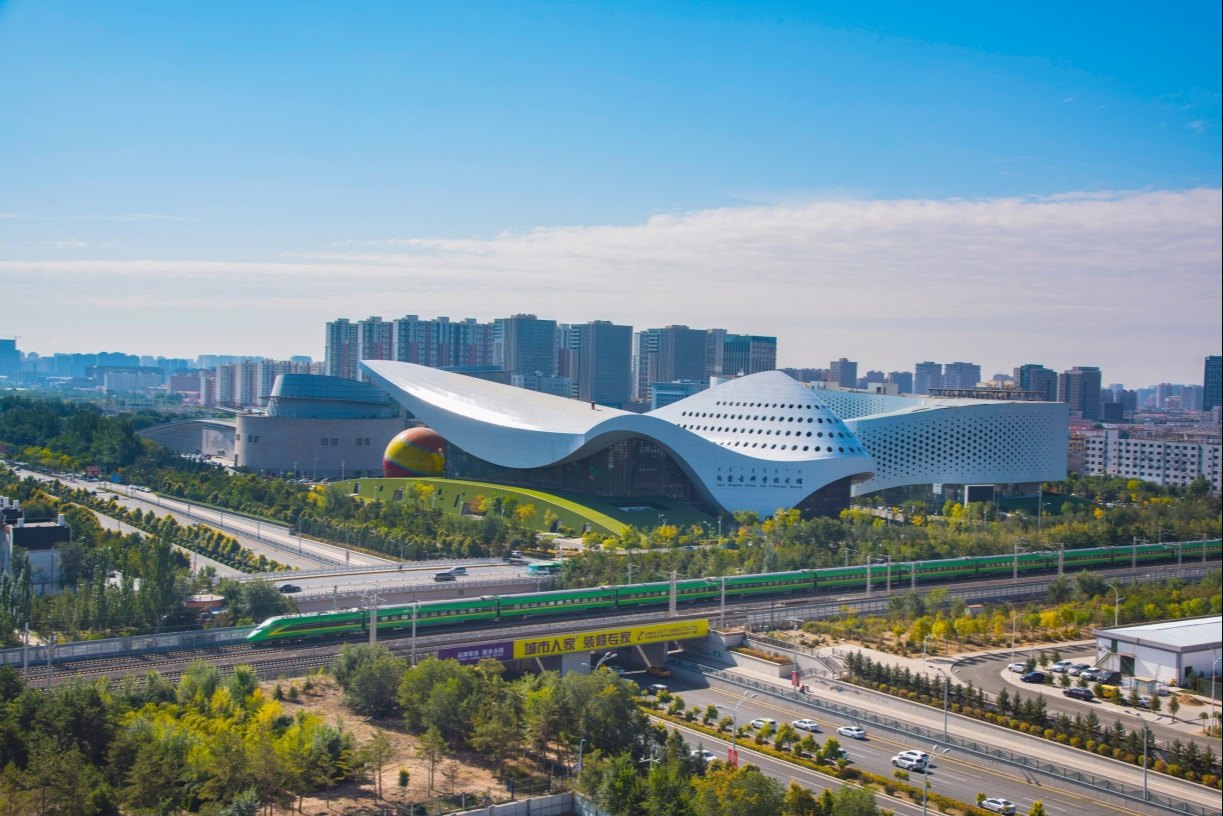 “綠巨人”動(dòng)車組飛馳在包西鐵路呼和浩特段。