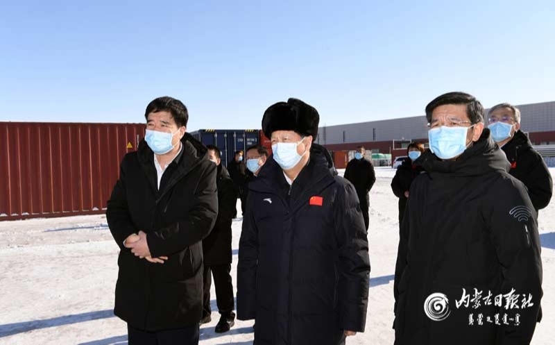 2月4日,自治區(qū)黨委書記、人大常委會主任石泰峰來到二連浩特市匯通物流園區(qū),了解疫情防控和作業(yè)運行情況。內蒙古日報社融媒體記者袁永紅攝