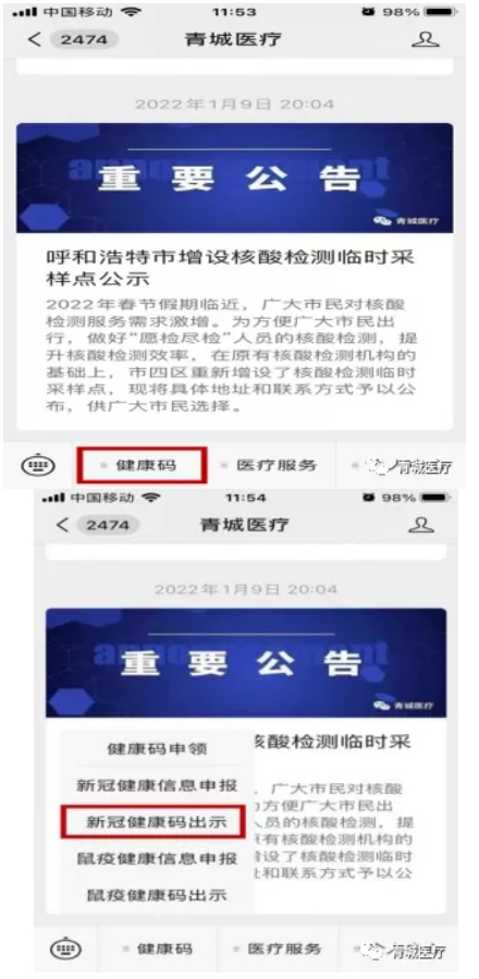 最近有呼和浩特市民反映不能及時(shí)在“青城醫(yī)療”健康碼上查詢到核酸檢測結(jié)果,建議大家執(zhí)行如下操作: