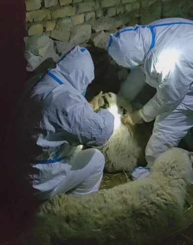 確診的、隔離的村民們原以為就是走個兩三天,把羊托付給鄰居照看喂點草料,但事實上,即便是兩三天,也有顧忌,更何況,鄰居也進不去院子,再者從疫情防控來說,居家就是居家,須嚴格執(zhí)行。而這個時候正是接羔繁忙時期,村民留下的500多只羊在該吃料該飲水的時候,見沒動靜,咩咩不斷,此起彼伏。更讓人著急的是,小羊生下來,旁邊沒人,如果母羊不護羔,小羊羔就會被踩踏致死。還有的村民隔離前,羊是被圈在圈里的,即使隔墻投飼草,怎么能正好投進羊圈里?有的村民在隔離,雖然能在院里活動,但羊草在院外,特別是下圪奔村一直是定時供水,早晚各一個小時,而有的供水點還在確診和隔離戶院里,人用水都有問題,怎么給羊飲水?