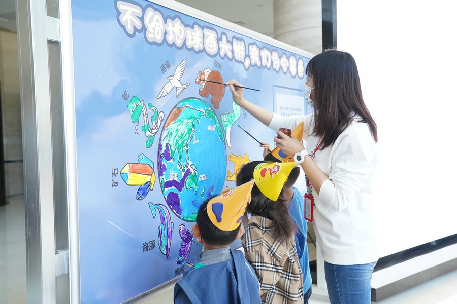 現(xiàn)場開展了“大自然在說話”“恐龍與我們,兩代地球居民的長談”“不給地球畫大餅,我們?yōu)樗钡纫幌盗兄黝}科普活動(dòng)。在“為地球著色”活動(dòng)中,參與者每人一筆為地球涂上“他”眼中地球的顏色,定格最美地球畫面;在“大自然在說話”活動(dòng)中,向公眾免費(fèi)開放的《生物大滅絕》科普課堂為聽眾講述了在地球生命演化過程中動(dòng)物、植物的出現(xiàn)、五次生物大滅絕等自然知識(shí);在“恐龍與我們,兩代地球居民的長談”活動(dòng)中,參觀者通過體驗(yàn)在放大鏡下修復(fù)三葉蟲、恐龍化石等活動(dòng)了解古生物發(fā)掘、修復(fù)知識(shí)。