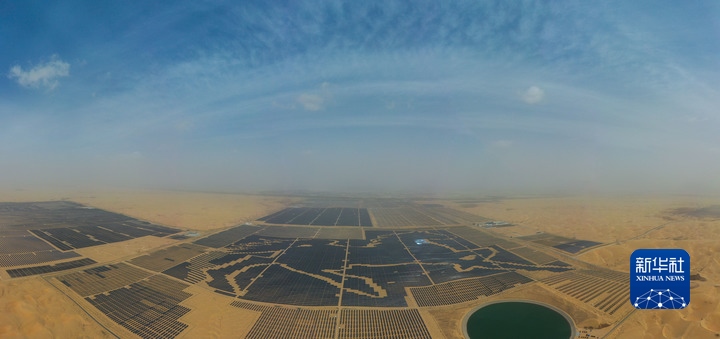 鄂爾多斯市庫布其沙漠深處,由近20萬塊深藍色光伏板構(gòu)成的巨型駿馬圖令人震撼,不少“拍客”慕名而來。這處駿馬光伏電站相當(dāng)于180多個標準足球場大小,板上發(fā)電、板下種植,既利用豐富的太陽能資源,又推動沙漠生態(tài)治理。