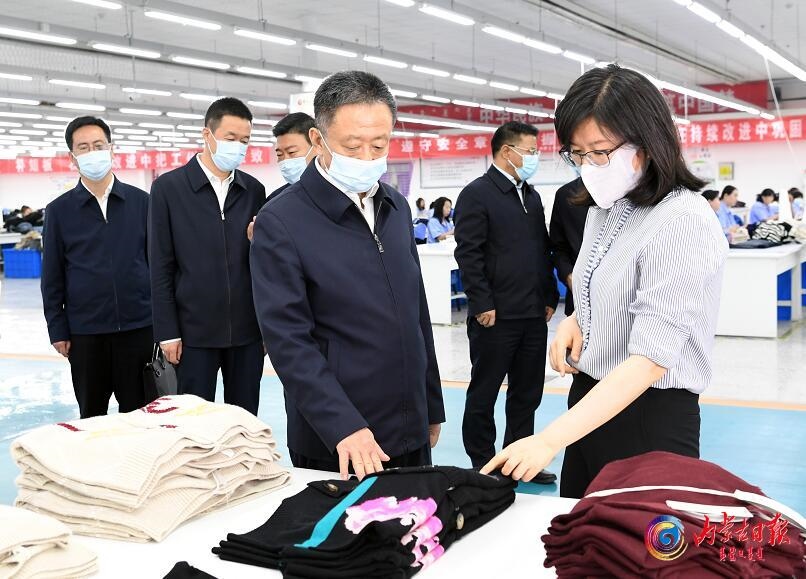 5月31日,自治區(qū)黨委書記孫紹騁來到鄂爾多斯高新技術產業(yè)開發(fā)區(qū)輕紡產業(yè)園,走進鄂爾多斯集團羊絨研發(fā)中心、生產車間和產品展廳,深入了解企業(yè)技術人才引進、產品開發(fā)及生產經營等情況。本報記者袁永紅攝
