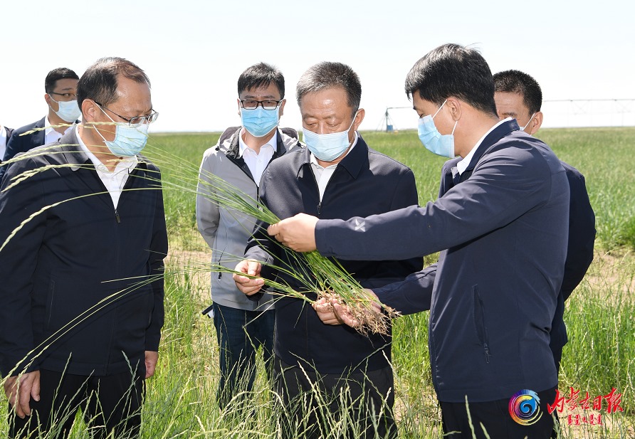孫紹騁在羊草擴(kuò)繁基地調(diào)研。內(nèi)蒙古日報社融媒體記者袁永紅攝