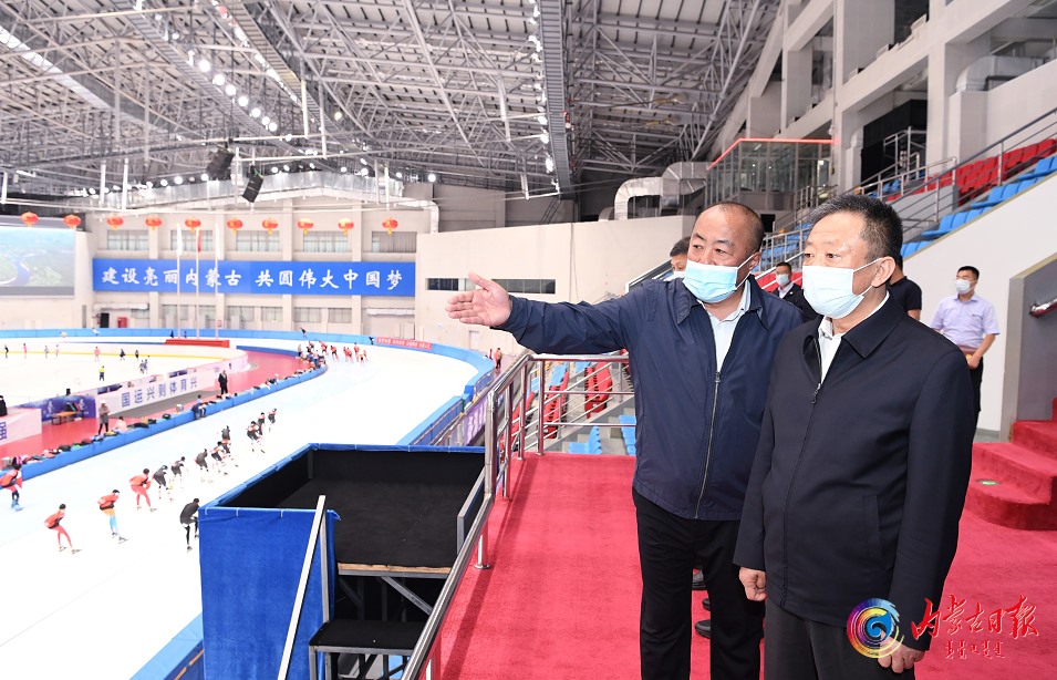 孫紹騁在內(nèi)蒙古冰上運(yùn)動訓(xùn)練中心考察。內(nèi)蒙古日報社融媒體記者袁永紅攝