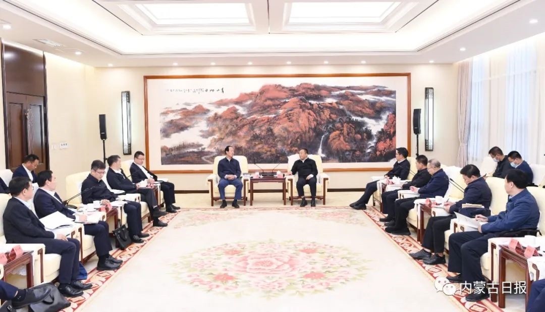 9月23日下午,自治區(qū)黨委書記孫紹騁在呼和浩特會(huì)見中國(guó)電力建設(shè)集團(tuán)有限公司黨委書記、董事長(zhǎng)丁焰章一行。內(nèi)蒙古日?qǐng)?bào)社融媒體記者袁永紅攝