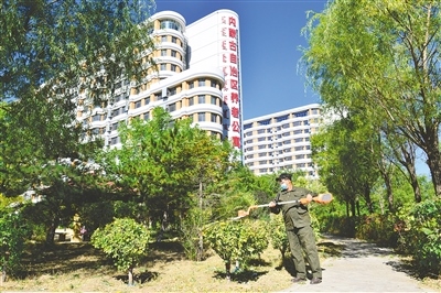 9月23日上午,物業(yè)工作人員在自治區(qū)示范性養(yǎng)老公寓院內(nèi)進行綠化維護。內(nèi)蒙古日報社融媒體記者 安寅東攝