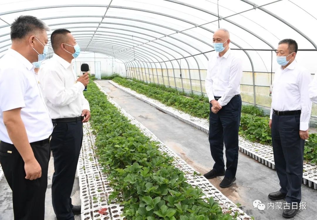 7月22日,北京市黨政代表團在錫林郭勒盟太仆寺旗考察調研。圖為北京市黨政代表團在太仆寺旗寶昌鎮(zhèn)邊墻村,察看特色農產品育苗、種植情況。記者袁永紅攝