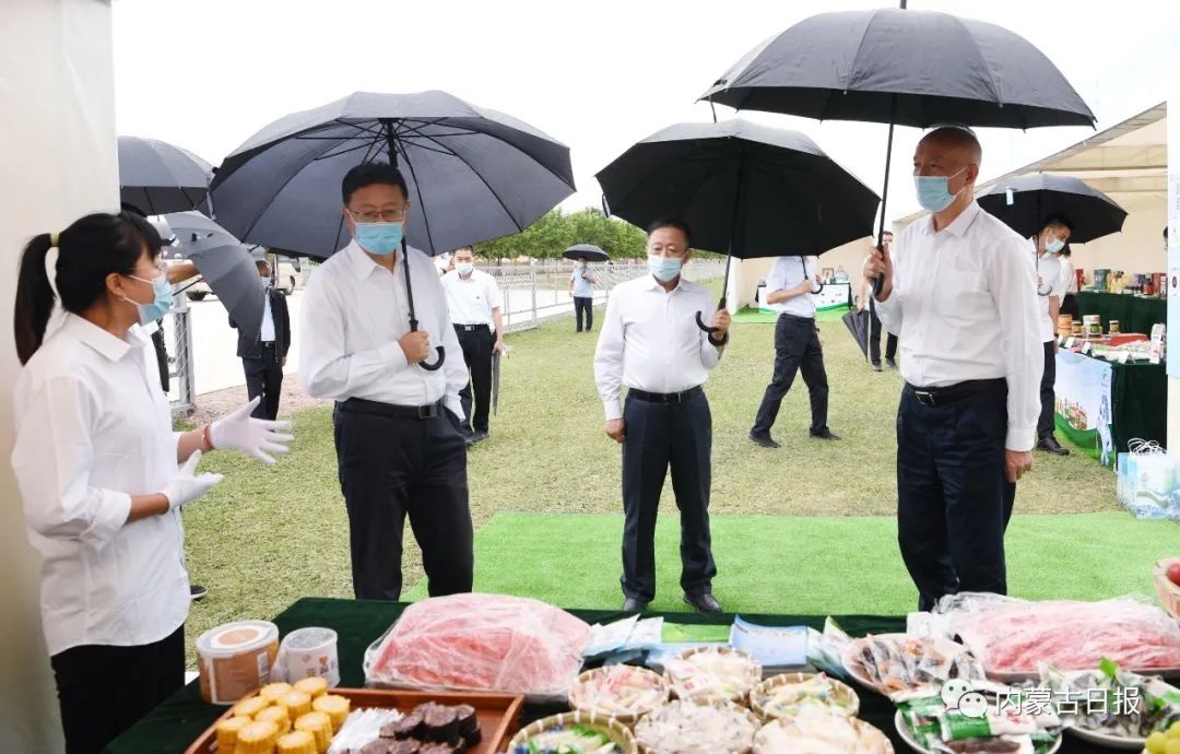 7月22日,北京市黨政代表團在錫林郭勒盟太仆寺旗考察調研。圖為北京市黨政代表團在太仆寺旗寶昌鎮(zhèn)邊墻村,察看農產品展示。記者袁永紅攝