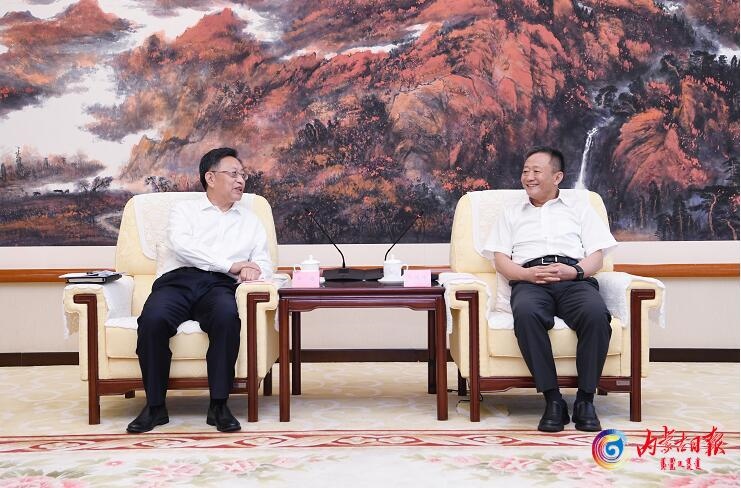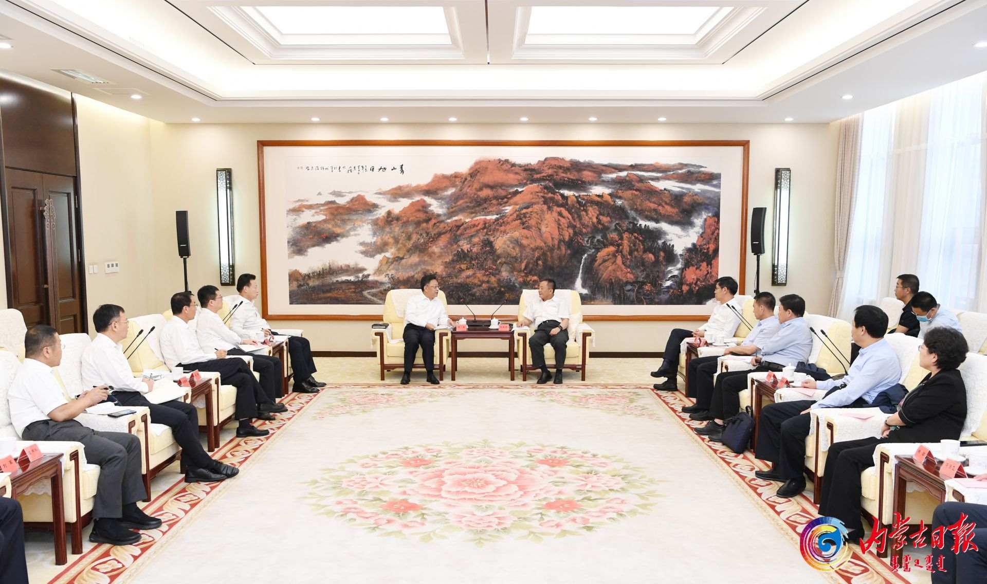 8月29日下午,自治區(qū)黨委書記孫紹騁在呼和浩特會(huì)見(jiàn)中國(guó)節(jié)能環(huán)保集團(tuán)黨委書記、董事長(zhǎng)宋鑫一行。內(nèi)蒙古日?qǐng)?bào)社融媒體記者袁永紅攝