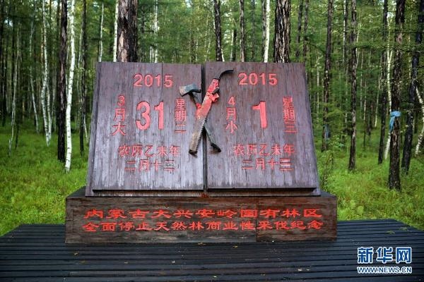 內蒙古大興安嶺林區(qū)停伐紀念碑。新華網 石毅 攝