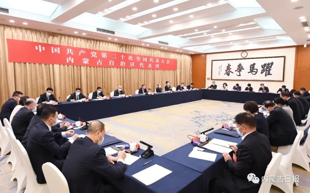 10月15日上午,中國(guó)共產(chǎn)黨第二十次全國(guó)代表大會(huì)內(nèi)蒙古自治區(qū)代表團(tuán)舉行全體會(huì)議。內(nèi)蒙古日?qǐng)?bào)社融媒體記者袁永紅攝