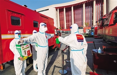 10月20日,在內(nèi)蒙古革命歷史博物館方艙醫(yī)院,呼和浩特市消防救援支隊(duì)消防員正在做個(gè)人消殺。本輪疫情發(fā)生以來(lái),該支隊(duì)累計(jì)執(zhí)行消毒消殺任務(wù)300余次,完成室內(nèi)消殺近15萬(wàn)平方米、消防安全線上檢查指導(dǎo)近500(家)次,為疫情防控貢獻(xiàn)消防力量。(內(nèi)蒙古日?qǐng)?bào)社融媒體記者記者 懷特烏勒斯 通訊員 隆雪 攝)
