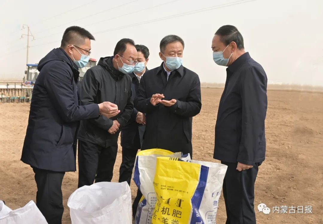 3月22日上午,自治區(qū)黨委書記孫紹騁在巴彥淖爾市調(diào)研五原縣新公中鎮(zhèn)萬畝糧食種植園區(qū)糧食種植情況。內(nèi)蒙古日報社融媒體記者 馬建荃 攝