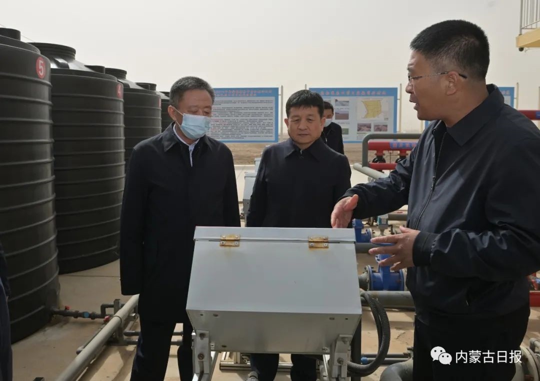 3月22日上午,自治區(qū)黨委書記孫紹騁在巴彥淖爾市調(diào)研烏拉特前旗新安鎮(zhèn)樹林子村高標(biāo)準(zhǔn)農(nóng)田科技示范區(qū)黃河水澄清滴灌項目。內(nèi)蒙古日報社融媒體記者 馬建荃 攝