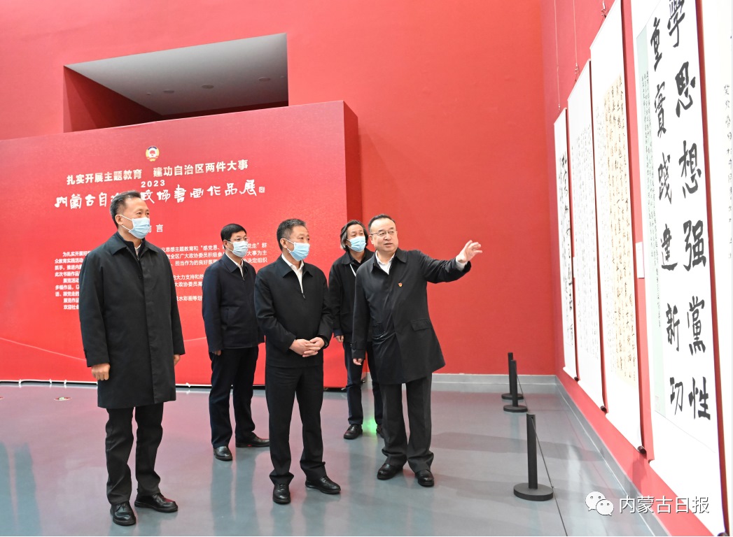 5月7日,自治區(qū)黨委書(shū)記孫紹騁來(lái)到內(nèi)蒙古美術(shù)館,參觀“扎實(shí)開(kāi)展主題教育建功自治區(qū)兩件大事——2023年內(nèi)蒙古自治區(qū)政協(xié)書(shū)畫(huà)作品展”。記者馬建荃攝