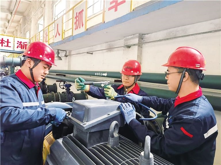 電儀車(chē)間的工人們正在檢修設(shè)備。