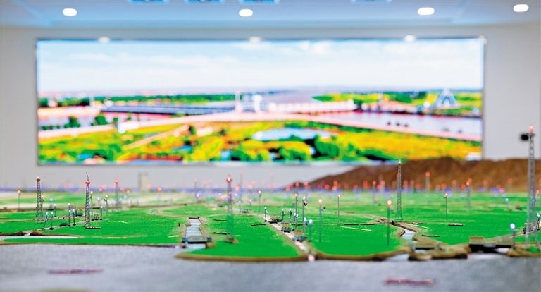 河套灌區(qū)是我國3個特大型灌區(qū)之一,也是我國重要的糧油生產(chǎn)基地,現(xiàn)已形成完整的7級灌排體系,引黃灌溉面積達(dá)1000多萬畝。160平方米的實體實時數(shù)字沙盤是微縮版的“河套灌區(qū)”,可以清晰地看到整個灌區(qū)的灌排體系。
