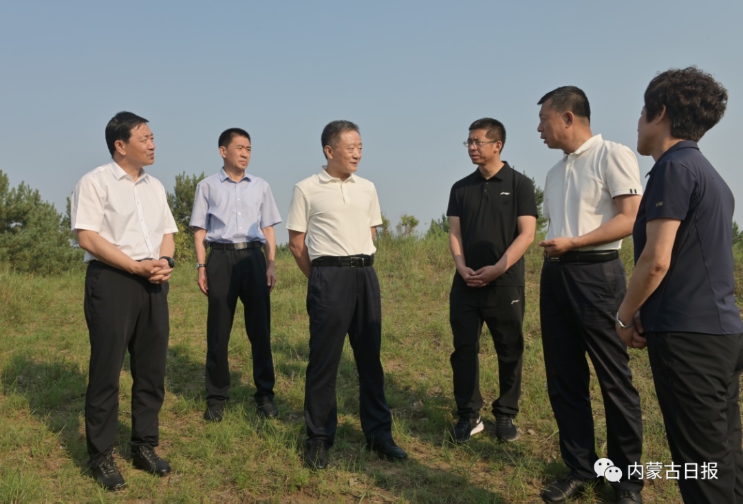 7月11日,自治區(qū)黨委書記孫紹騁在庫倫旗科爾沁沙地林業(yè)重點生態(tài)建設(shè)工程庫倫鎮(zhèn)項目區(qū)敖倫嘎查考察治理成效。內(nèi)蒙古日報社融媒體記者馬建荃攝