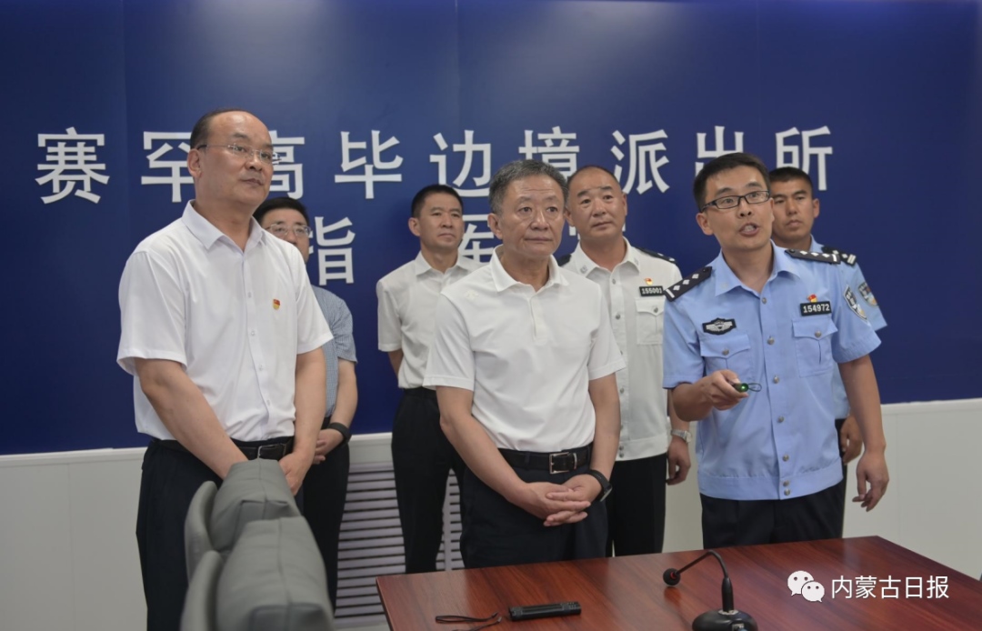 8月13日,自治區(qū)黨委書記孫紹騁在蘇尼特左旗賽罕高畢蘇木邊境派出所調(diào)研邊境管控工作。內(nèi)蒙古日報(bào)社融媒體記者 馬建荃 攝