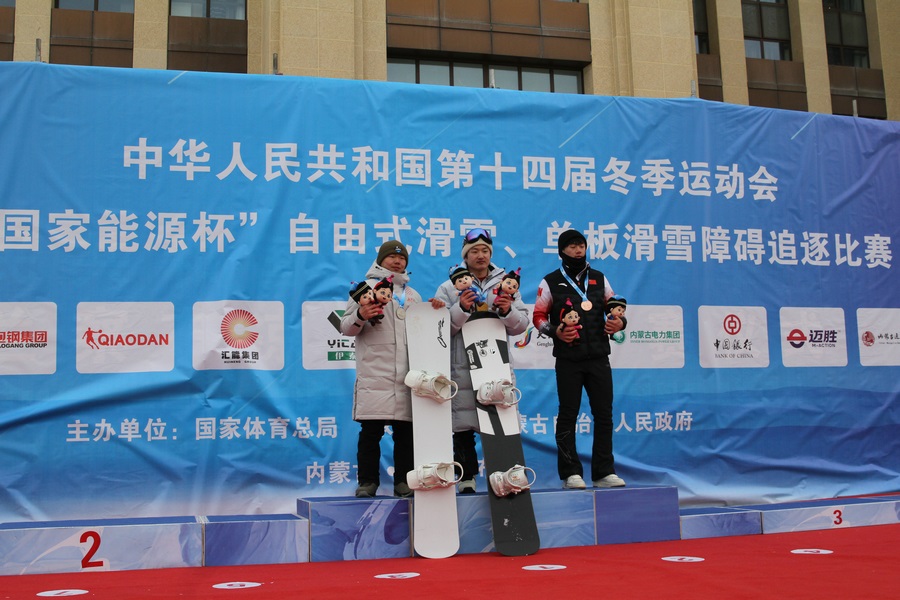 北疆新聞烏蘭察布2月19日電(記者 張楊 王豐)2月19日,第十四屆全國冬季運(yùn)動會單板滑雪公開組男子障礙追逐賽在烏蘭察布涼城滑雪場結(jié)束,吉林隊(duì)選手葉康佳率先沖過終點(diǎn)線摘得金牌。這是他在“十四冬”上收獲的首枚金牌。內(nèi)蒙古選手李柯新、山西選手張彬分獲亞、季軍。