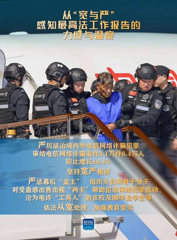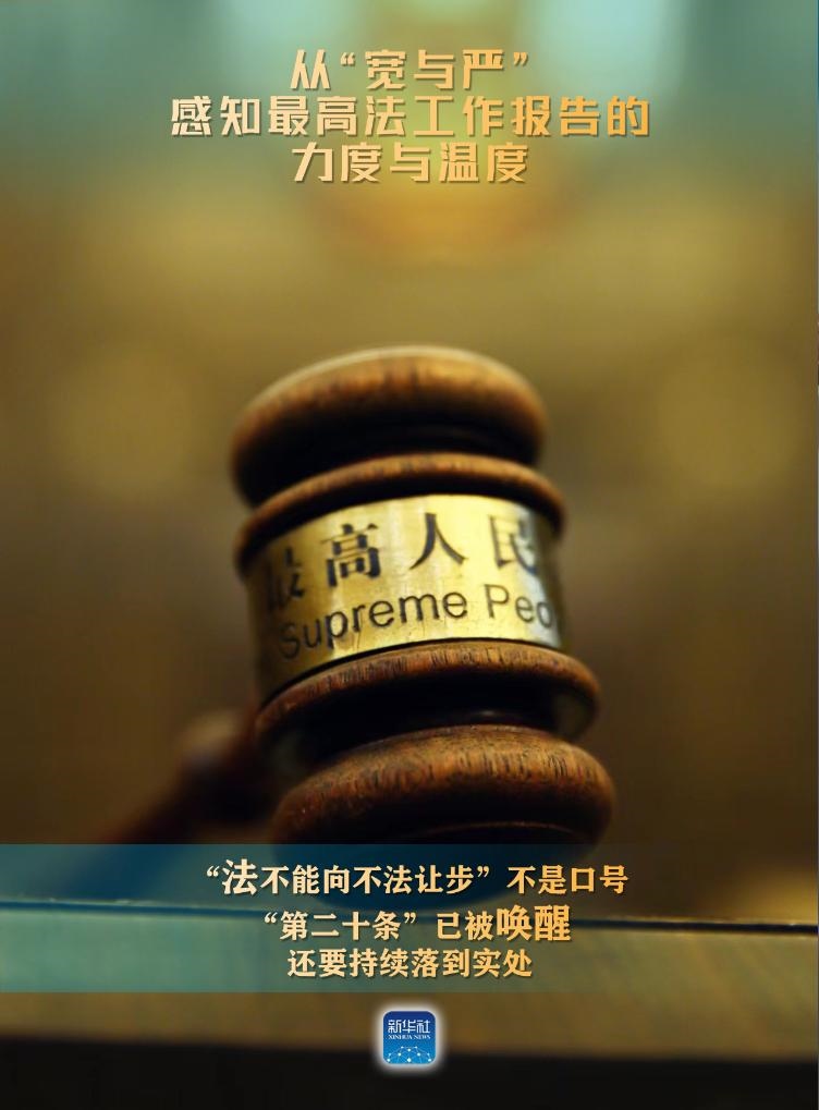 新華社北京3月9日電(記者高潔、馬知遙、袁秋岳)3月8日,最高人民法院工作報(bào)告提請(qǐng)十四屆全國人大二次會(huì)議審議。報(bào)告中列舉了不少案例,有的案件從嚴(yán)從重判決,有的從寬或無罪判決。讓我們從“寬與嚴(yán)”感知報(bào)告的力度與溫度。