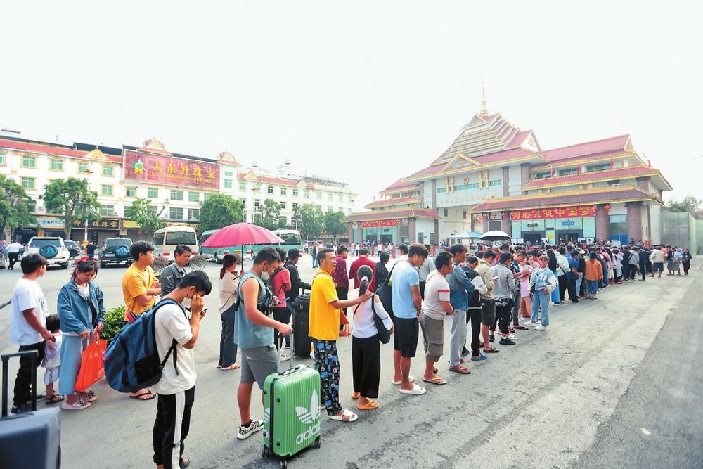邊民在云南瑞麗口岸排隊(duì)等待通關(guān)。云南日?qǐng)?bào)記者陳飛攝