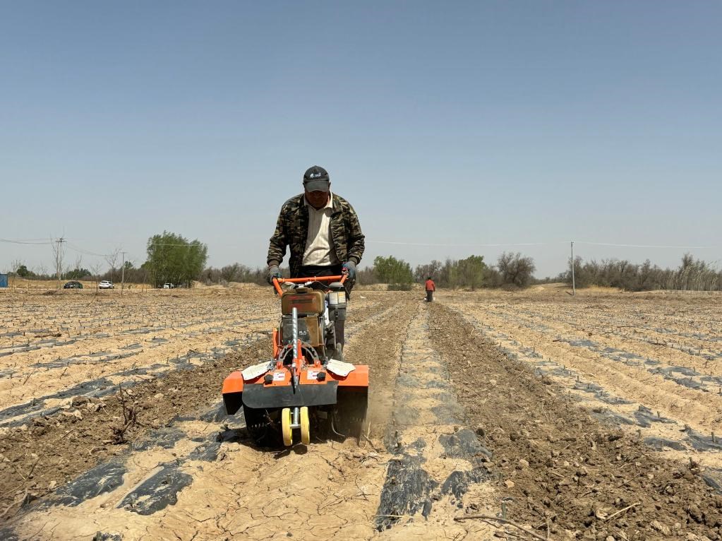 連日來(lái),在新華林場(chǎng)育苗基地里,工人們正在用手扶式旋耕機(jī)進(jìn)行旋地作業(yè),將樹苗間一塊塊板結(jié)的土壤打散。“旋地可以防止土地板結(jié)龜裂導(dǎo)致的水分流失,提高樹苗成活率,為提高育苗造林質(zhì)量打好基礎(chǔ)。”新華林場(chǎng)職工呂林澤介紹說(shuō),4月以來(lái),林場(chǎng)采用扦插育苗的方式培育330畝楊樹、柳樹等喬木,采用播種育苗的方式培育170畝楊柴、紫穗槐等灌木,育苗工作進(jìn)展順利。