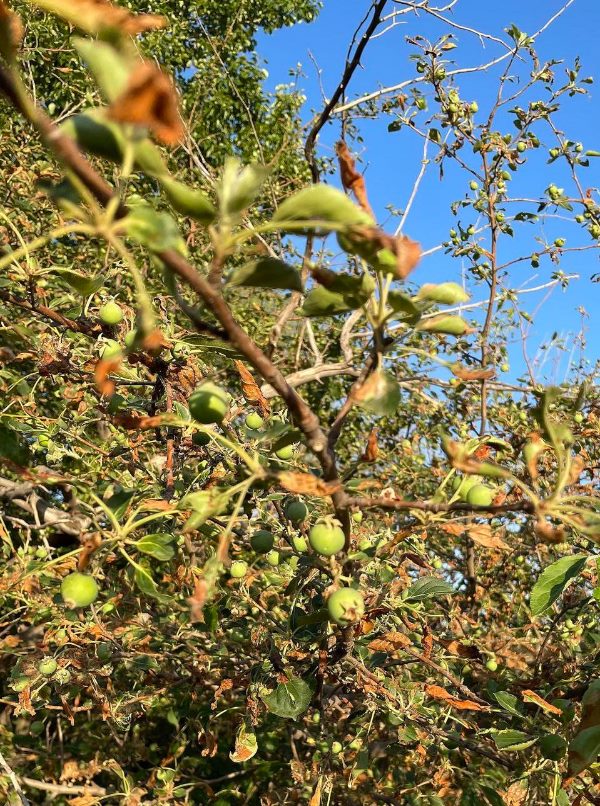 ??多年后,隨著條件改善,村里打上機井,大壩逐漸廢棄,壩下無人料理的果樹卻還年年結果。今年,又有不少綠色小果子掛在枝頭。馮玉寬每到夏天都要回來摘一點,帶回家曬果干。“這就是一種情結。小時候放暑假,我們孩子就來這吃果子,吃到肚脹……”