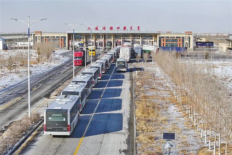 2024年,內(nèi)蒙古口岸貨運(yùn)量增至1.234億噸;陸路口岸貨運(yùn)量繼續(xù)領(lǐng)跑全國(guó);有進(jìn)出口業(yè)務(wù)的經(jīng)營(yíng)主體增至3500多家;中蒙二連浩特-扎門烏德經(jīng)濟(jì)合作區(qū)獲批;通遼保稅物流中心獲批;甘其毛都口岸高速公路全線貫通;滿洲里鐵路口岸互貿(mào)區(qū)封關(guān)運(yùn)營(yíng)……內(nèi)蒙古向北開放煥發(fā)出勃勃生機(jī)。