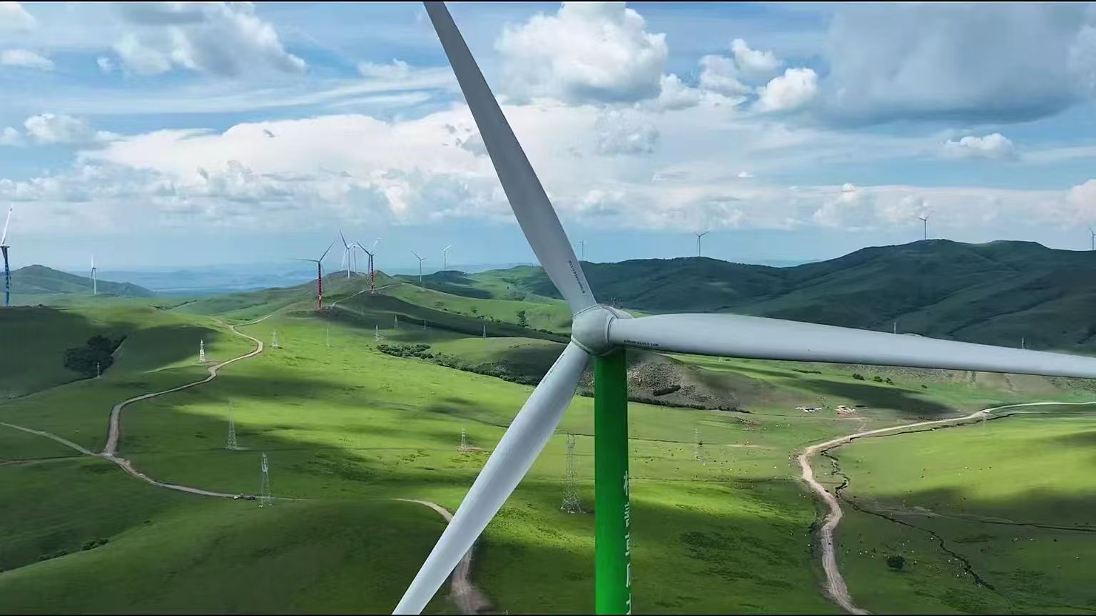 圖為中廣核興安盟300萬千瓦風電項目場區(qū),目前該項目已經(jīng)全容量并網(wǎng)。