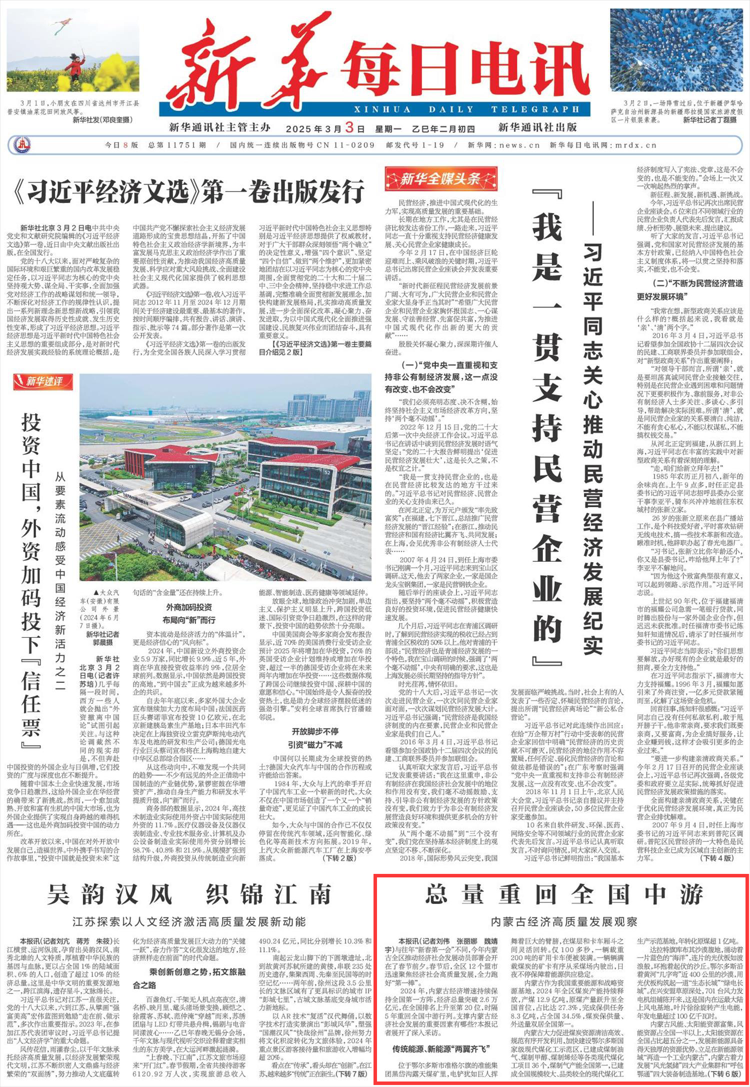 2025年3月3日,《新華每日電訊》第1版刊發(fā)題為《總量重回全國中游 內(nèi)蒙古經(jīng)濟(jì)高質(zhì)量發(fā)展觀察》的文章,報道了與往年“新春第一會”不同,今年內(nèi)蒙古全區(qū)推動經(jīng)濟(jì)社會發(fā)展動員部署會開在了春節(jié)前夕。春節(jié)后,全區(qū)12個盟市迅速聚焦經(jīng)濟(jì)社會高質(zhì)量發(fā)展,全力跑好“第一棒”。2024年,內(nèi)蒙古經(jīng)濟(jì)增速持續(xù)保持全國第一方陣,經(jīng)濟(jì)總量突破2.6萬億元,在全國排名上升至第20位,時隔5年重回全國中游行列。