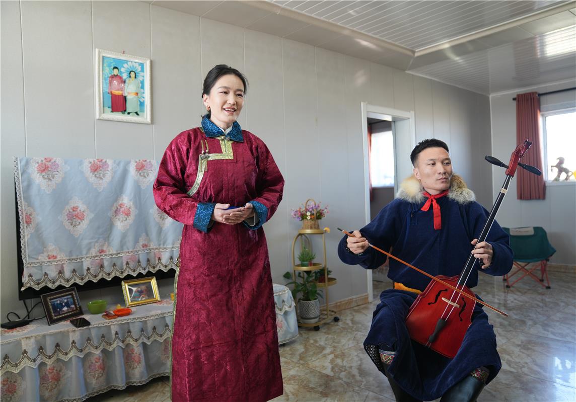 走進(jìn)蘇尼特左旗滿(mǎn)都拉圖鎮(zhèn)巴彥淖爾嘎查牧民格日勒的家里,傳來(lái)悠揚(yáng)的馬頭琴聲、優(yōu)美的歌聲。阿拉騰達(dá)來(lái)帶領(lǐng)幾名烏蘭牧騎隊(duì)員,開(kāi)展基層演出服務(wù),不僅將歡樂(lè)送到了牧民家,更是作為政協(xié)委員,關(guān)心關(guān)注牧民的生產(chǎn)生活。