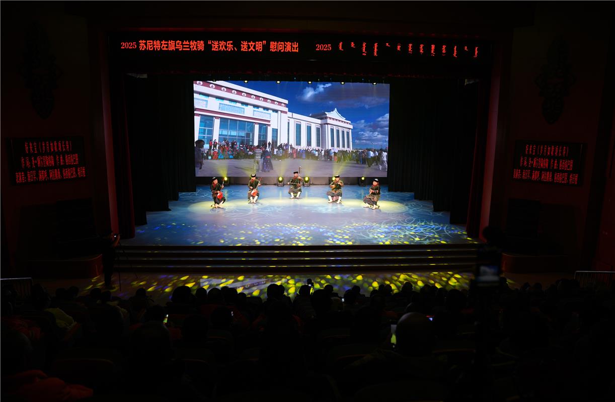 近日,在錫林郭勒盟蘇尼特左旗烏蘭牧騎演播廳內(nèi),一場(chǎng)“送歡樂(lè)、送文明”慰問(wèn)環(huán)衛(wèi)工人、供熱公司一線職工專(zhuān)場(chǎng)演出精彩上演,《歡騰的北疆》《吉祥之火》等多個(gè)新排演的節(jié)目與觀眾見(jiàn)面。