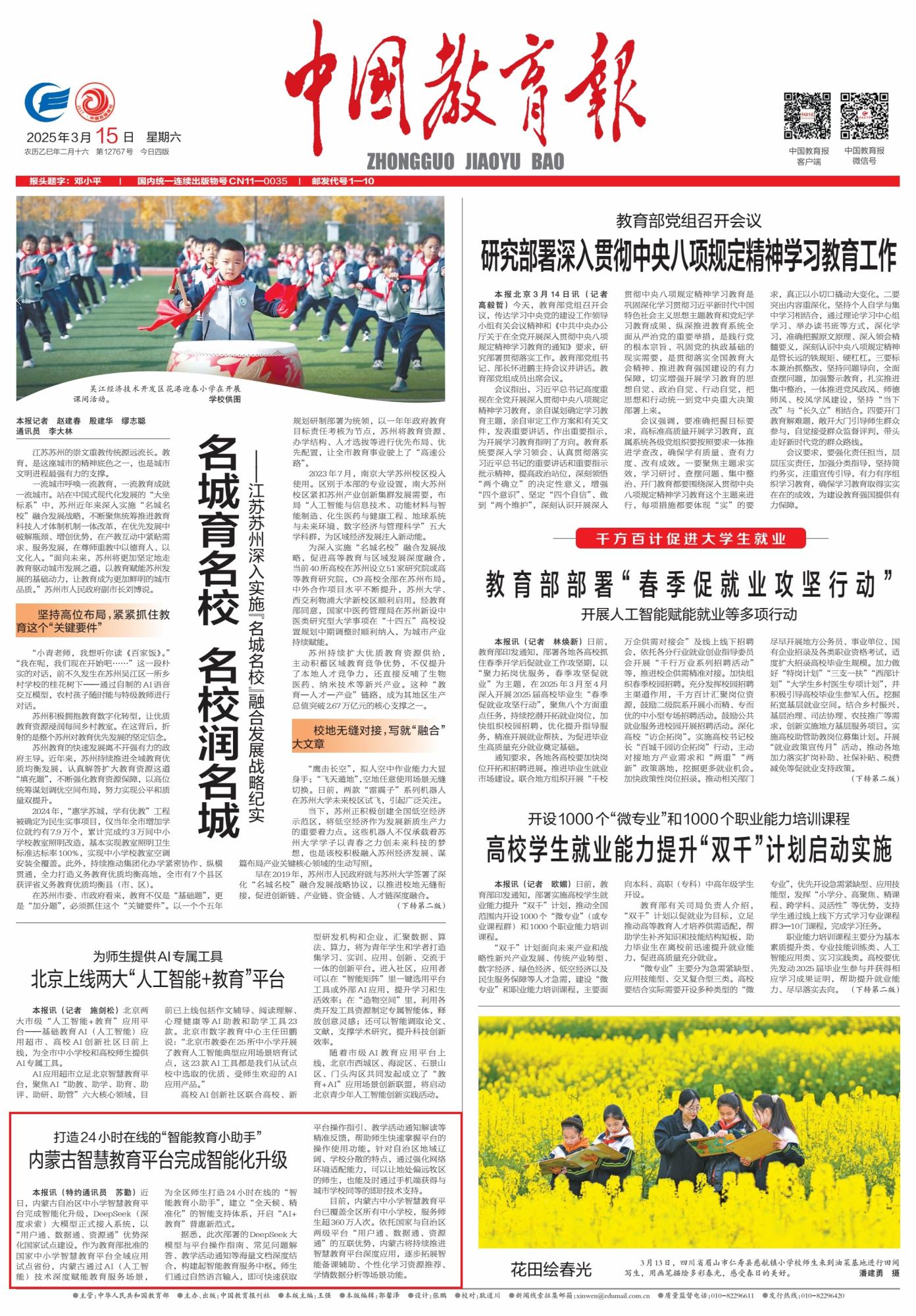 《中國教育報》(2025年3月15日1版)